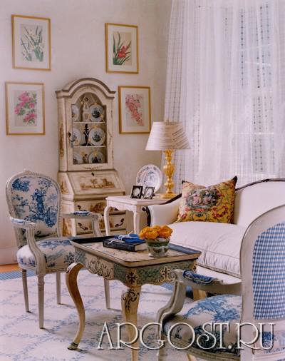 Изящный, романтичный и утонченный стиль. Импровизация и эффект «продуманного беспорядка» - ключ к успеху к такому оформлению. Обилие художественной ковки и предметов «с историей» создают богемную атмосферу. Неотъемлемая часть стиля - комбинация тканей: бархата, тахты, органзы, шелка. Оформление окна не обязательно должно быть многослойным, но всегда изящным. Поверхности незамысловаты: ламинат или керамогранит, стены матовые под покраску или покрыты обоями с орнаментом ситца. Одно из главных правил французского стиля – сдержанность: не должно быть лишнего пафоса, вульгарных оттенков и перегрузки помпезными элементами, это считается дурным тоном. Палитра утонченная: пастельные холодные оттенки – от нежного голубого, мятного до сиреневого. При этом берегитесь красного и всех кричащих цветов – они нарушат хрупкую французскую гармонию. В этом стиле уделяется много внимания не только комфорту, но и силуэту мебели: классические фигурные стулья, оттоманки, диваны с изогнутыми подлокотниками, пуфы с резными ножками. Характерно декоративное состаривание мебели и аксессуаров, для антуража используются предметы и коллажи с декупажем. Ковки должно быть много: кровати, карнизы, люстры и напольные лампы, этажерки, решетки, подсвечники. Оформляя дом во французском стиле вам понадобятся в первую очередь сдержанность и умеренность во всем: в цвете, количестве, а главное в качестве предметов. Дело не в цене: мебель и декор можно найти на европейских блошиных рынках – но это должны быть предметы благородного вида, которых не испортил – а наоборот скрасил налет времени.
