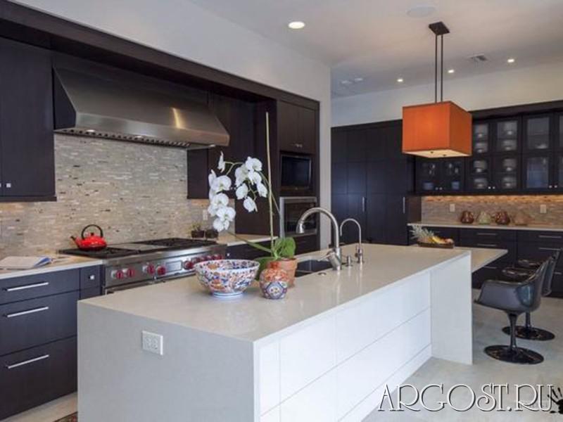 Кухонный остров подойдет для тех, кто привык готовить много и часто. К нему можно подойти с любой стороны и готовить, не упираясь взглядом в стену. В остров легко вмонтировать электрическую плиту, но вот с раковиной могут возникнуть сложности – этот момент стоит учесть на начальном этапе планирования ремонта.