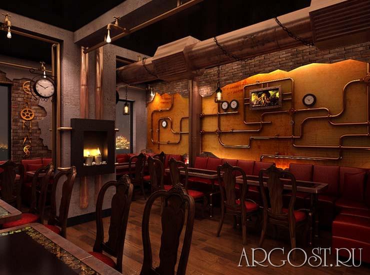 Стиль стимпанк развивает идею альтернативной реальности, в которой цивилизация развивается на основе паровых машин. Стимпанк может быть самодостаточным направлением для оформления или же дополнять интерьеры в стиле ретро, винтаж, модерн. Цветовая гамма – разные оттенки коричневого, от светло-бежевого до практически черного. Металлические детали окрашиваются под медь и латунь. Освещение должно имитировать рассеянный теплый свет газовых светильников. Поскольку по временным рамкам торжество паровых машин совпадает с Викторианской эпохой, то и некоторые ее атрибуты присутствуют в стимпанке, например, оформление стен: тканевая обшивка, стилизации, состаренные обои. Иногда стены обшиваются металлическими панелями с крупными заклепками или деревом, что должно напоминать обстановку подводной лодки или паровоза. Для облицовки стен годится так же природный камень и кирпич, но обязательно грубоватого вида либо со специальным состариванием. Для стимпанка характерны перепады высоты помещения – арки, ниши, ступени, колонны создают ощущение ходьбы по коридору фантастической машины. И главное: очень много труб, заклепок, счетчиков, часов, колес и других механических деталей. Трубы также используются как мебель: зачастую в комнатах стиля стимпанк нет привычных полок, предметы расставляются на трубы, ниши. Дом в стиле стимпанк очень похож на музей старинных вещей и механизмов: географические карты 18-19 века, поршни, печатные машинки и газовые лампы, старые телефоны и гайки. Мебель тщательно подбирается их массивных викторианских и футуристических предметов. Главное, что в этом узнаваемом стиле, который объединяет прошлое и будущее, неприемлемы синтетические материалы: только металл, дерево, камень и стекло.